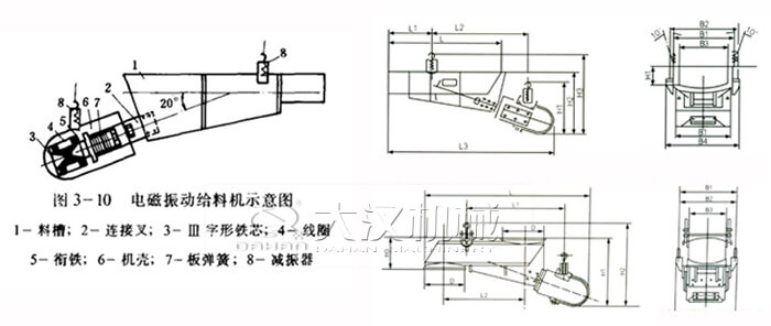 主要由料槽、電磁激振器、減振器組成。激振器又由電磁鐵(鐵芯和線圈)、銜鐵和裝在兩者之間的主振彈簧等構(gòu)成,是產(chǎn)生振動的激振源,激振器的工作可以通過一定的控制裝置進行控制。