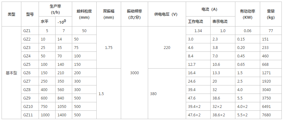 GZ電磁振動給料機的價格是型號來制定的,型號越大的GZ電磁振動給料機價格就會越貴,而型號是由生產(chǎn)率、給料粒度等數(shù)據(jù)決定,具體技術參數(shù)如下: