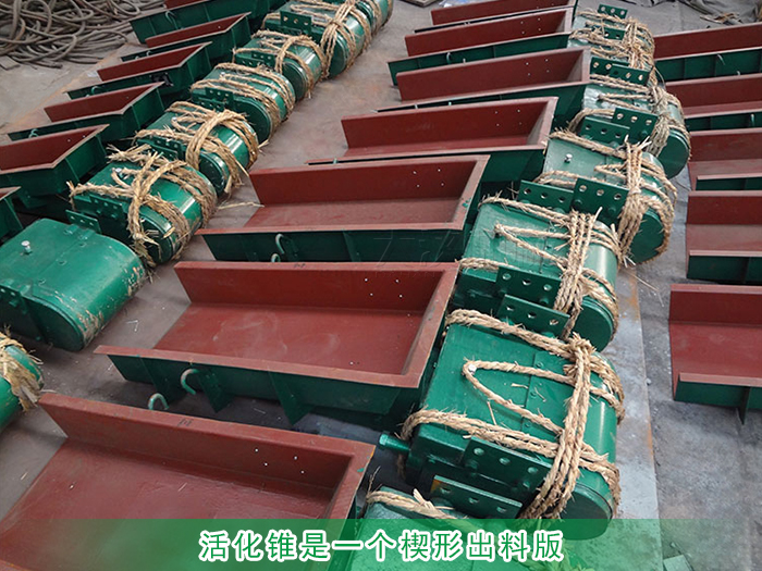 活化錐是一個(gè)楔形出料版,小頭向上,固定在共振體上,由于激振器產(chǎn)生的激振力的作用,活化錐在振動(dòng)方向上和共振體一起作近似于簡(jiǎn)諧振動(dòng)。通過(guò)活化錐產(chǎn)生向上的力,將水平振動(dòng)高效地傳遞到頂部物料,振動(dòng)力所產(chǎn)生的擾動(dòng)能量松動(dòng)物料使其下落。