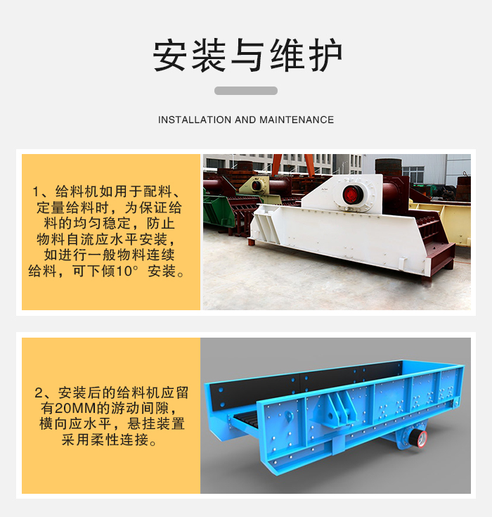 b、安裝后的給料機(jī)應(yīng)留有20mm的游動(dòng)間隙,橫向應(yīng)水平,懸掛裝置采用柔性連接。