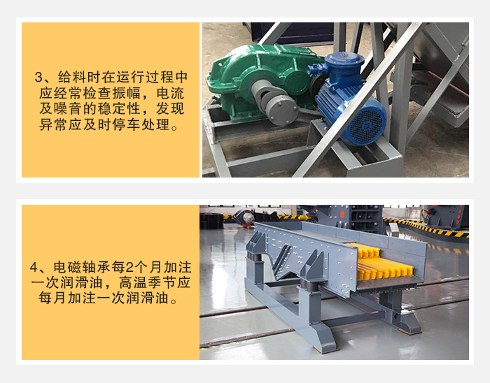 e、給料時(shí)在運(yùn)行過(guò)程中應(yīng)經(jīng)常檢查振幅,電流及噪音的穩(wěn)定性,發(fā)現(xiàn)異常應(yīng)及時(shí)停車(chē)處理。